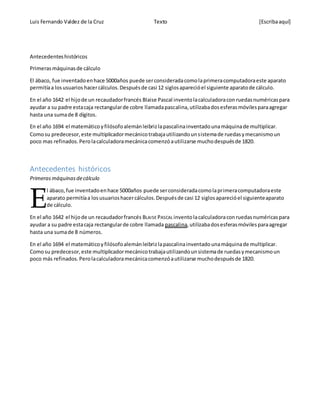 permitíaa losusuarios hacercálculos.Despuésde casi 12 siglosaparecióel siguiente aparatode cálculo.