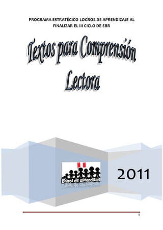 1) El documento presenta información sobre programas estratégicos de aprendizaje y logros al finalizar el tercer ciclo de educación básica regular. 2) Incluye textos de primer y segundo grado, exámenes censales, adivinanzas y anexos. 3) El resumen proporciona una visión general del contenido y estructura del documento sin entrar en detalles específicos.