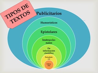 Este documento define y explica los textos literarios. Explica que los textos literarios tienen una función estética y utilizan un lenguaje selecto y figuras literarias para crear belleza. Requieren la imaginación del lector para comprender el significado completo. El lector es fundamental para darle sentido al texto. Algunos ejemplos de textos literarios son cuentos, novelas y poesía.