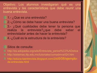 El documento proporciona una guía para la realización de entrevistas y la redacción de textos narrativos como leyendas y cuentos, destacando sus definiciones, características y estructuras. Además, se mencionan los tipos de textos y los elementos necesarios para la creación de narraciones efectivas. También se incluyen recursos y sitios de consulta para una mejor comprensión de los temas tratados.