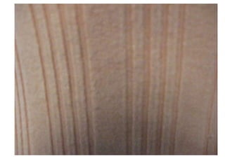 El documento habla sobre textura, línea y color en creaciones artísticas, notando el uso de colores, líneas curvas y la utilización del color. También menciona cómo el exceso de luz puede distorsionar el color.