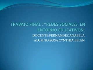 Este documento presenta un proyecto llamado "Las TIC como herramientas de inclusión" destinado a ayudar a estudiantes con dificultades académicas o en riesgo de dejar la escuela. El proyecto utilizará plataformas como Facebook y blogs para proporcionar material didáctico semanal y actividades. Los maestros evaluarán las producciones de los estudiantes para mejorar sus prácticas educativas y reducir la deserción escolar.