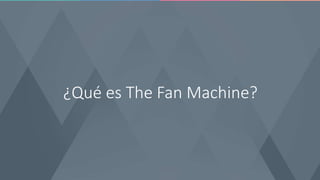 The Fan Machine es una suite de herramientas para gestionar redes sociales y campañas de marketing. Incluye herramientas para publicar contenido, crear campañas promocionales, optimizar anuncios, analizar métricas e insights, y gestionar las interacciones con los clientes y seguidores en las redes sociales. La compañía tiene oficinas en varios países de Latinoamérica y ha ayudado a grandes marcas y empresas a conectar con más de 20 millones de usuarios en las redes.