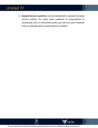 La jurisprudencia se refiere a las interpretaciones reiteradas de los tribunales sobre las normas jurídicas. La jurisprudencia técnica se centra en sistematizar las reglas de un ordenamiento particular sin considerar valores fundamentales o filosofía del derecho. Su objetivo es ordenar los preceptos jurisprudenciales para aplicarlos a necesidades específicas de tiempo y lugar. Se diferencia de la filosofía del derecho en que esta última se basa más en valores y sentidos subyacentes, mientras que la jurisprudencia técnica solo sistem