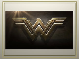 Este documento presenta información sobre la Mujer Maravilla, incluyendo su nombre completo como Princesa Diana de Themyscira, sus poderes como fuerza sobrehumana e inmortalidad, y su identidad secreta como Diana Prince, agente del gobierno. También describe su traje, que se basa en símbolos de América, y su rol como embajadora que difunde un mensaje de fortaleza y amor.