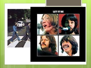 Los Beatles fueron una banda británica muy influyente formada por John Lennon, Paul McCartney, George Harrison y Ringo Starr. Tuvieron un gran éxito comercial en la década de 1960 con álbumes como Sgt. Pepper's Lonely Hearts Club Band y canciones como "Hey Jude". Fueron pioneros del rock psicodélico y se separaron en 1970, aunque su legado musical los convirtió en una de las bandas más importantes de la historia.