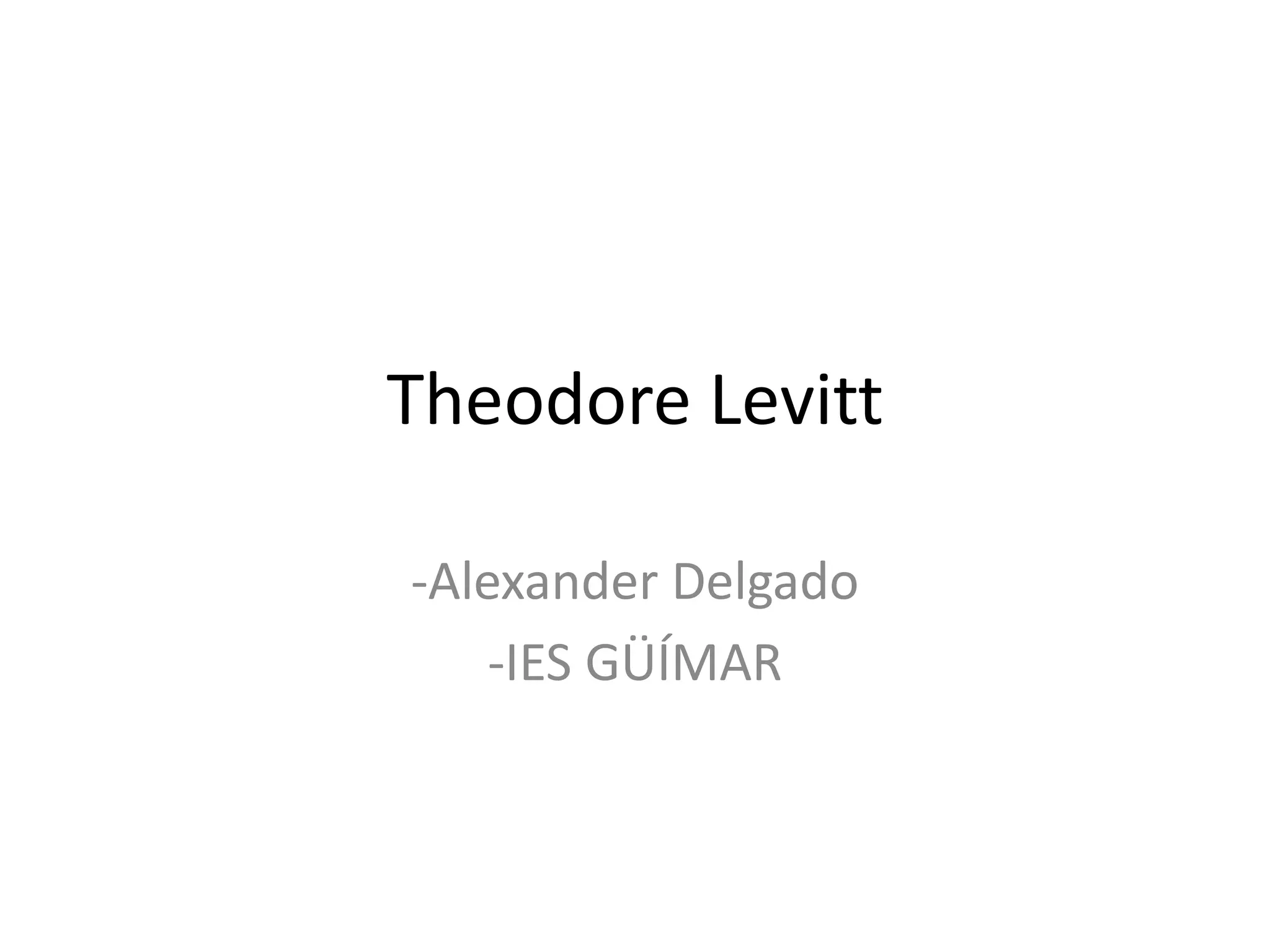 Theodore Levitt fue un economista y profesor estadounidense de la Escuela de Negocios de Harvard. Nació en Alemania pero se mudó a los Estados Unidos en 1935 para escapar de la persecución nazi. Fue el primero en acuñar el término "globalización" desde una perspectiva económica. Más tarde contrajo VIH durante un viaje a Tailandia y falleció en 2006.