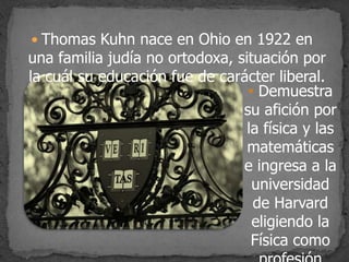 Thomas Kuhn analiza el desarrollo de la ciencia a través de la historia y propone que este ocurre en periodos alternados de "ciencia normal" y "revoluciones científicas". La ciencia normal se basa en paradigmas establecidos, mientras que las revoluciones científicas transforman los paradigmas existentes cuando surgen anomalías que los paradigmas no pueden explicar.