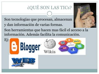 Las Tecnologías de la Información y Comunicación (TICs) son herramientas que procesan, almacenan y comparten información de forma electrónica y automática para facilitar el acceso y la comunicación de datos. Sirven para recuperar, almacenar, organizar e intercambiar información y han permitido que el hombre modernice sus implementos de trabajo y se relacione de forma más sistemática con el mundo, aunque también plantean riesgos como el fraude y la falta de privacidad.