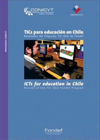 Este documento describe el programa TIC EDU de Fondef en Chile, el cual tiene como objetivo mejorar los procesos de aprendizaje mediante soluciones que incluyen el uso de TICs. El programa busca impulsar la investigación aplicada, desarrollar capacidades científico-tecnológicas y transferir resultados al sector educativo. Se resaltan los desafíos de incorporar las TICs en la educación chilena de manera equitativa y efectiva, y se mencionan iniciativas para abordar estas tareas. La publicación presenta los