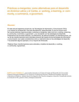 Se hace un planteamiento de las prácticas emergentes y su contribución al desarrollo