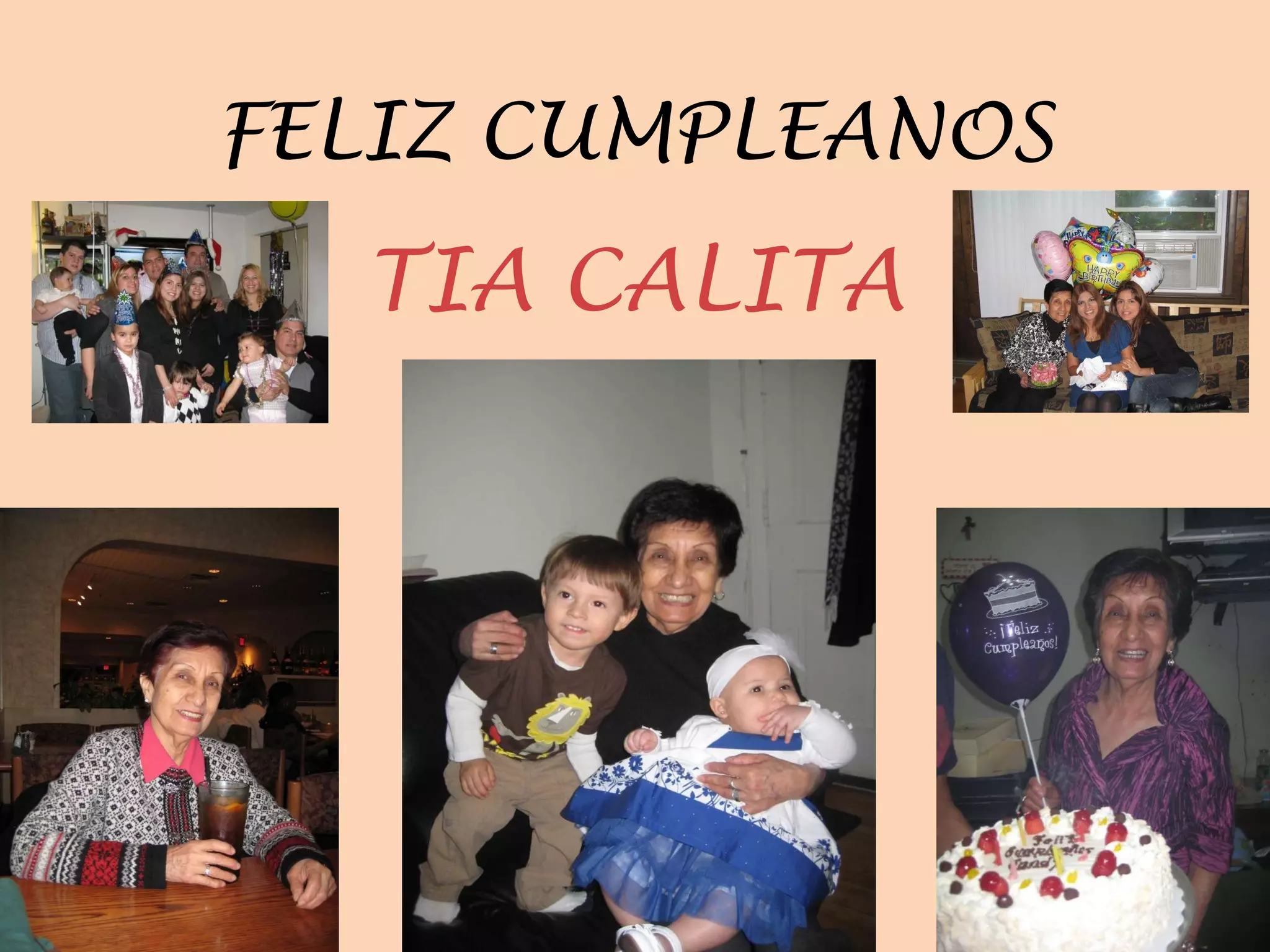 Feliz cumpleaños Tía Calita. Diferentes grupos de familiares y amigos envían saludos a Tía Calita en su cumpleaños, incluyendo a Ed, Evelin, Alex y Emily; Kathy, Felice y Sienna; Jorge, Johanna y Melanie; y Vanessa, Kevin, Justin y Dominick.