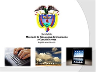 El Ministerio de Tecnologías de la Información y las Comunicaciones de Colombia promueve el acceso y uso efectivo de las TIC para mejorar la calidad de vida y el desarrollo del país. A través de programas como 'Gobierno en Línea' y 'Compartel', se busca optimizar el uso de estas tecnologías en instituciones educativas y zonas desfavorecidas. El enfoque incluye el reacondicionamiento de equipos y la capacitación en el uso de TIC para MIPYMES.