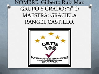 El documento describe los andamios y tareas realizados por Gilberto Ruiz Mar en su clase de 1er grado. Incluye la creación de dos andamios en Word con características como columnas, filas, imágenes e inserción de encabezados. También describe la escritura de un texto con efectos y estilos, la creación de tablas para promedios, cálculos, transporte y ventas usando fórmulas matemáticas y de porcentajes, y la combinación y alineación de celdas.