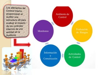 Este documento presenta un resumen de una auditoría operativa realizada por un grupo de estudiantes. El documento define el ambiente interno de control como el entorno organizacional que promueve prácticas éticas y una gestión responsable a través de la influencia en el comportamiento del personal. Luego describe dos elementos clave del ambiente interno de control: la integridad y los valores éticos de la gerencia y el personal, y la autoridad y responsabilidad establecida por la alta gerencia que se refleja en las acciones de la organización.