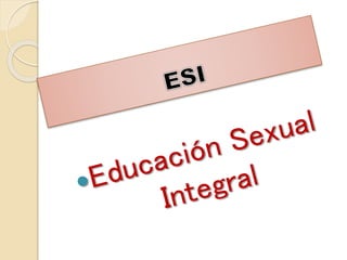 La ley 26.150 establece la responsabilidad del Estado de proveer Educación Sexual Integral (ESI) en todas las escuelas públicas y privadas. La ESI aborda la sexualidad humana desde una perspectiva integral que incluye factores biológicos, psicológicos y socioeconómicos. Se enseña desde la primera infancia de forma sistemática y transversal en el currículo escolar. La ESI busca que los estudiantes se conozcan, cuiden, quieran y respeten a sí mismos y a los demás, y pre