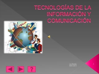 El documento describe las redes de comunicación y tecnologías de información. Explica que las redes incluyen elementos y técnicas para el tratamiento y transmisión de información, principalmente informática, internet y comunicaciones. También describe cómo las tecnologías de información y comunicación han mejorado nuestro desarrollo intelectual y comprensión mutua al permitir el acceso a información de forma rápida desde cualquier lugar. Finalmente, menciona algunas tecnologías clave de comunicación a través de la historia como el telégrafo, teléfono,