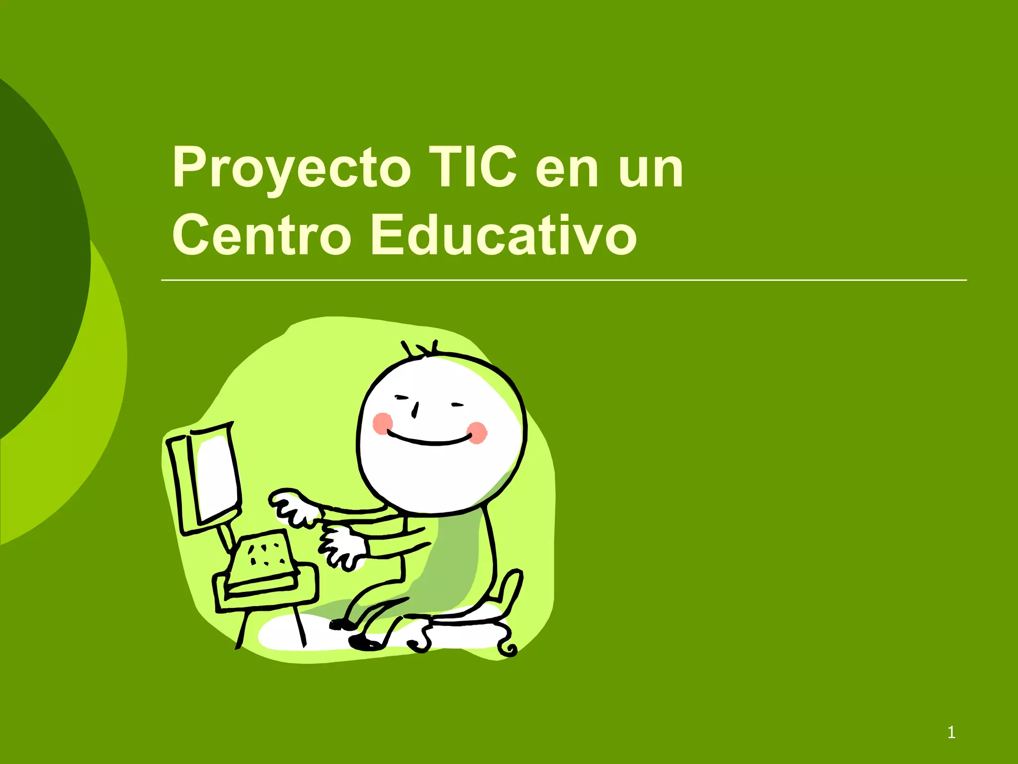 Este documento describe un proyecto TIC en un centro educativo. El proyecto tiene varias líneas de actuación como la alfabetización digital, el uso de materiales, la formación del profesorado y la evaluación. El objetivo general es integrar las tecnologías de la información y la comunicación en la enseñanza para mejorar el aprendizaje de los estudiantes.