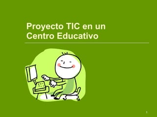 Este documento presenta un proyecto TIC para un centro educativo. El proyecto tiene varias líneas de acción como alfabetización digital, uso de materiales, biblioteca escolar y formación del profesorado. Los objetivos son mejorar las habilidades del alumnado y profesorado en el uso de las TIC para el aprendizaje. El proyecto se evalúa midiendo el progreso del alumnado, profesorado y proceso de integración de las TIC en la enseñanza.