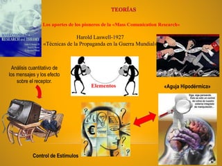 Este documento presenta un resumen de las principales teorías de la comunicación masiva desde sus inicios en la década de 1920 hasta finales del siglo XX. Aborda las teorías funcionalistas estadounidenses iniciales, las teorías críticas europeas, las teorías de la dependencia y los estudios latinoamericanos sobre recepción crítica. También analiza los efectos de la globalización y las tecnologías de la información en la comunicación moderna.