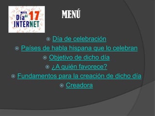 El Día Mundial de la Sociedad de la Información se celebra el 17 de mayo en España, Argentina, Colombia y México. Su objetivo es acercar a las personas al uso seguro e idóneo de Internet y favorecer el acceso a la sociedad de la información. Fue creado por una oficina técnica, un comité impulsor y promotores para coordinar eventos sobre el uso de Internet.