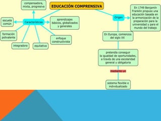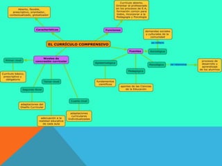 El documento describe los principios del currículo comprensivo en Ecuador y en el mundo. Explica que el sistema educativo ecuatoriano da autonomía a los centros para desarrollar el currículo de manera abierta y constructiva, involucrando al profesorado. También establece que el gobierno fijará los aspectos básicos del currículo para garantizar una formación común para todos los estudiantes. Además, señala que el principio de comprensividad implica impartir el mismo programa unificado de aprendizaje a todos los estudiantes