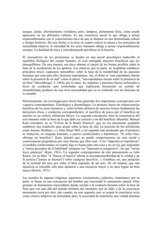 Este documento discute la relación entre ética, etnicidad y educación desde una perspectiva humanista integral. Argumenta que la educación debe desarrollar todas las dimensiones humanas de manera holística y evitar distorsiones, considerando al ser humano como un ser esencialmente personal y comunitario. También explora diferentes enfoques éticos como el teleológico, deontológico y las morales de algunas religiones. Concluye que la educación debe enfocarse en desarrollar una ética profesional que guíe las acciones de ac