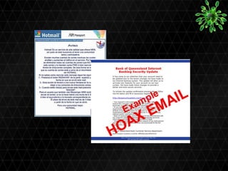 Este documento trata sobre varios temas relacionados con la seguridad informática. Explica qué son los virus informáticos, los diferentes tipos de virus como gusanos y troyanos, y cómo se propagan. También describe los programas antivirus, cortafuegos, copias de seguridad, y la importancia de establecer contraseñas seguras. Por último, analiza amenazas como el spam, hoax, phishing, y ofrece consejos sobre cómo proteger las redes WiFi.