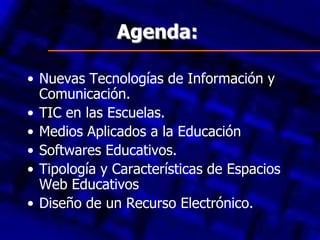 Este documento describe la historia y desarrollo de las Tecnologías de Información y Comunicación (TIC) desde la década de 1960 hasta la actualidad. Explica cómo las computadoras se introdujeron originalmente en las escuelas en los años 60 y 70 para fines administrativos, y cómo su uso en la educación se expandió en las décadas siguientes con el desarrollo de software educativo interactivo y el surgimiento de Internet. También define las TIC, explica sus características clave y ventajas, como permitir un aprendizaje individualizado y