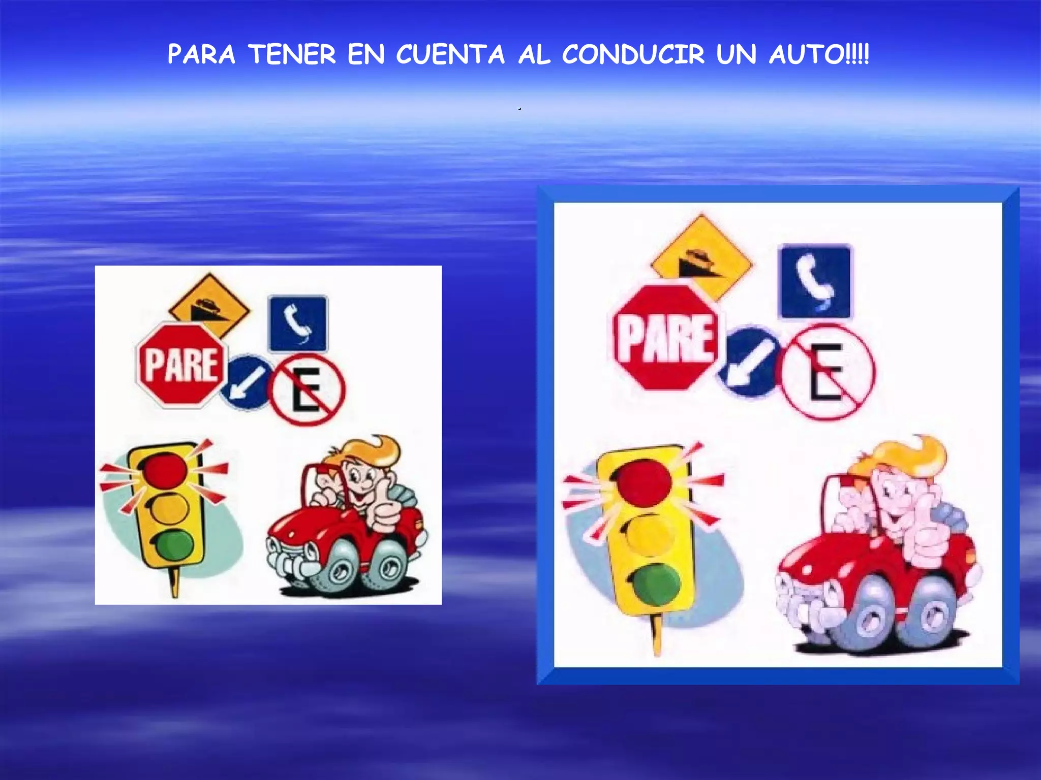 El documento menciona varios temas brevemente incluyendo consejos para conducir un auto, una fotografía de un mural, cómo alimentarnos y nuestra zona costera, sin proporcionar detalles sobre ninguno de los temas.