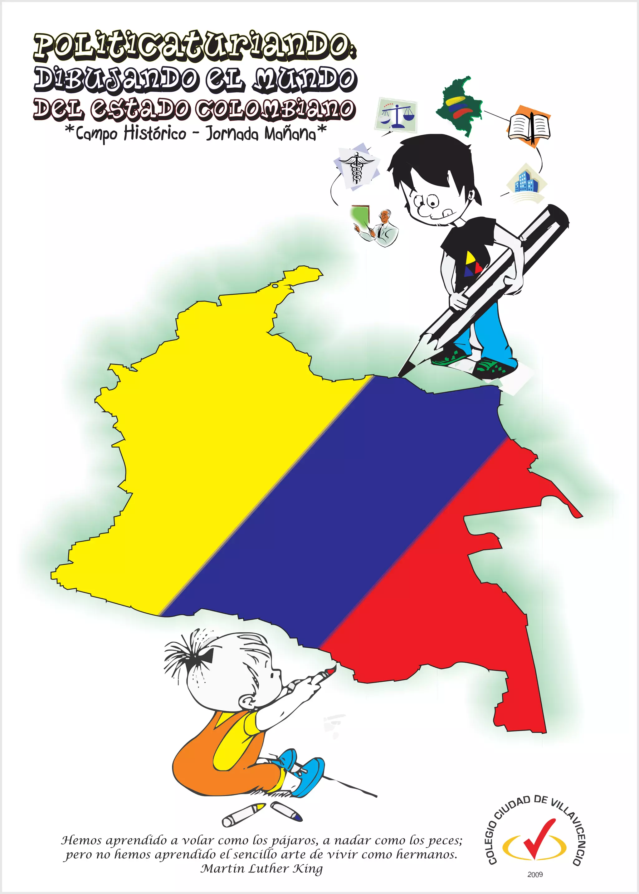 El documento habla sobre la política en Colombia. Brevemente describe cómo se ha dibujado el estado colombiano a través de la historia y cómo aún queda trabajo por hacer para que todos los ciudadanos puedan vivir como hermanos en paz y armonía.