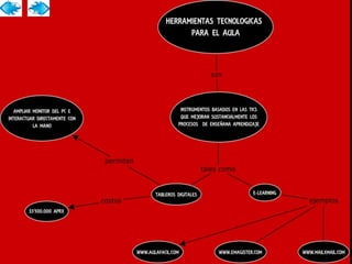 Este documento presenta una introducción a las TIC (tecnologías de la información y comunicación) en la educación. Menciona algunas herramientas digitales como blogs, foros, wikis, Macromedia Flash y editores de video que pueden usarse en el aula. También habla sobre páginas web, software educativo, tableros digitales interactivos y programas gubernamentales para proveer computadores a escuelas. Finalmente, agradece a varias páginas web por su información sobre este tema.