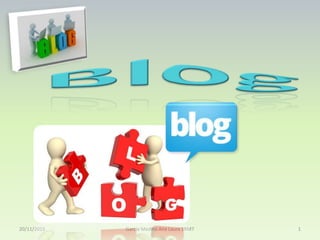 El documento define qué es un blog, sus principales tipos como blogs personales, microblogging, blogs corporativos y educativos. Explica que un blog permite a los usuarios publicar información para comunicarse y crear comunidades con intereses similares. También describe otros tipos de blogs según el género, dispositivo o red, como moblogs, fotologs y redes de blogs.