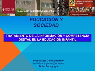 Este documento trata sobre el tratamiento de la información y la competencia digital en la educación infantil. Explica que esta competencia implica habilidades como buscar, obtener y procesar información, así como comunicarla y transformarla en conocimiento. También cubre el uso de las tecnologías de la información y la comunicación en la educación infantil para apoyar estas habilidades.