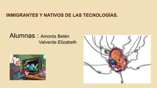 El documento discute la distinción entre nativos digitales e inmigrantes digitales. Los nativos digitales son estudiantes que han crecido con la tecnología digital, mientras que los inmigrantes digitales aprendieron sobre la tecnología en algún punto de sus vidas. Los docentes a menudo se sienten temerosos de la tecnología, pero reconocen la importancia de capacitarse en el área. Es vital que los docentes se vuelvan a alfabetizar en la tecnología para poder enseñar a los estudiantes en la era digital.