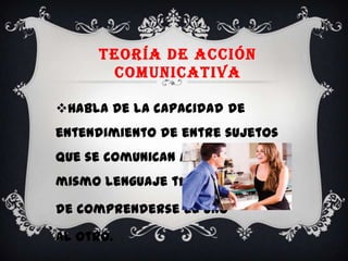 La pedagogía socio crítica busca una visión compleja de la realidad social a través de la relación constante entre teoría y práctica. Se basa en la teoría de la acción comunicativa y enfoque el aprendizaje como un proceso significativo que reconoce la diversidad. Promueve valores como el consenso, la negociación, el respeto por la diversidad y la cooperación.