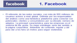 Este documento introduce los conceptos básicos de las tecnologías de la información y la comunicación (TIC) y las redes sociales. Explica que las TICs surgen de la unión entre computadoras y comunicaciones y revolucionaron la forma de comunicarse a partir de los años 90 cuando Internet dejó de ser solo para la comunidad científica. También describe varias redes sociales e aplicaciones gerenciales como Blackboard, Edmodo, Evernote, Foursquare, Hootsuite, Instagram, LinkedIn y Moodle.
