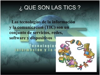 Las tecnologías de la información y la comunicación (TIC) optimizan el manejo de la información y la comunicación para mejorar la calidad de vida de las personas a través de un sistema de información interconectado. Algunas ventajas de las TIC incluyen la facilidad de entregar y recibir información a distancia, facilitar la comunicación y el aprendizaje, mientras que una desventaja es el riesgo de mal uso, como pornografía y estafas.