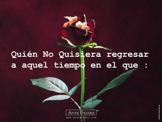 El documento describe recuerdos nostálgicos de la infancia, como tomar decisiones mediante concursos simples, resolver errores con una hoja nueva, jugar a policías y ladrones, astronautas o superhéroes, y recibir dinero del Ratón Pérez por los dientes de leche. También menciona la inocencia de la niñez, como ver la guerra como algo del pasado y no tener preocupaciones sobre el sexo opuesto. Resalta la importancia de disfrutar la vida y pasar tiempo con amigos.