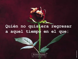 El documento describe nostálgicamente la infancia, cuando las decisiones se tomaban de forma simple, los errores se corregían escribiendo de nuevo, el peor castigo era escribir líneas, y jugar con amigos era la principal diversión. Detalla actividades comunes de niños como jugar a las tiendas, canicas, astronautas, deportes sin reglas estrictas, y cómo los hermanos mayores eran tanto una molestia como protectores leales. Alienta a compartir estos recuerdos con amigos para tomar un descanso de la vida adulta ajetreada