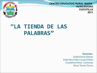 Este proyecto busca fortalecer el proceso de lectoescritura en niños de primaria a través de la implementación de una tienda escolar. La tienda permitirá practicar valores como la cooperación y habilidades como la lectura y escritura de una manera lúdica y práctica. El proyecto integrará diferentes áreas como lengua castellana, ciencias naturales y sociales. Se implementará durante todo el año lectivo 2011 haciendo uso de recursos como computadores, internet y materiales para la tienda.