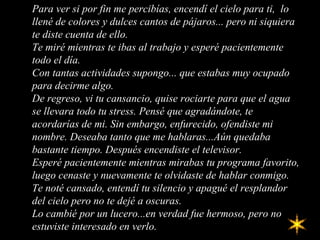 Dios observa a una persona mientras se levanta por la mañana y se prepara para el día sin dedicarle tiempo a Dios. A pesar de los esfuerzos de Dios por llamar su atención a través de la naturaleza y la música, la persona pasa todo el día ocupada sin hablar con Dios. Al final del día, Dios le desea lo mejor y espera poder pasar tiempo con la persona en el futuro.
