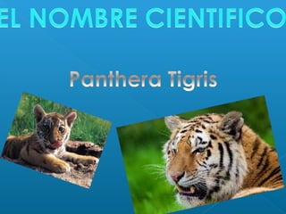El documento habla sobre diferentes subespecies de tigres como el tigre de Bengala, Malayo y de Sumatra. Explica que los tigres son mamíferos carnívoros con rallas anaranjadas y negras, y que el tigre de Bengala es la subespecie más común aunque se encuentra en peligro de extinción con solo 3,200 tigres restantes en Asia.