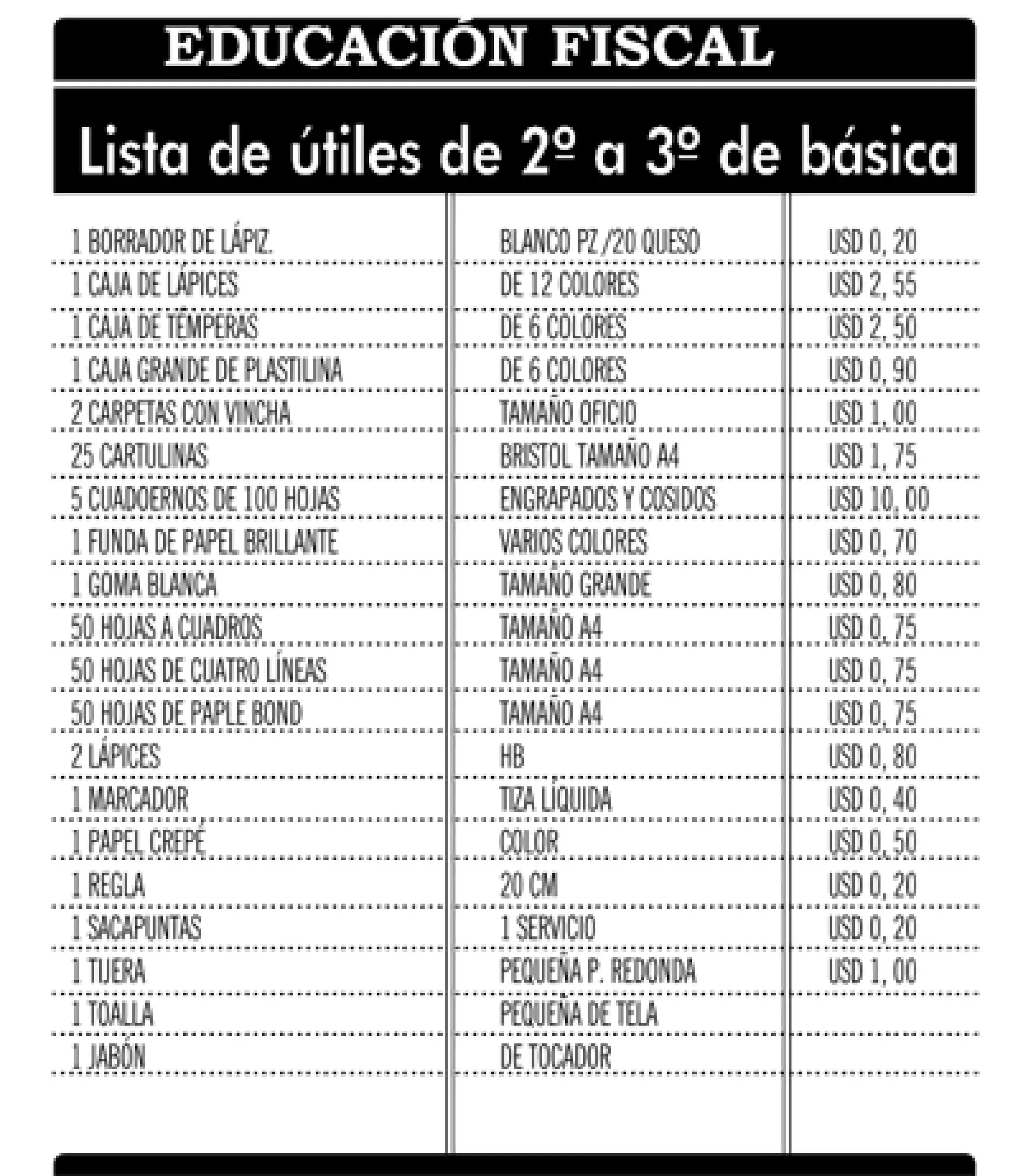 Útiles para 2 y 3 de básica