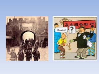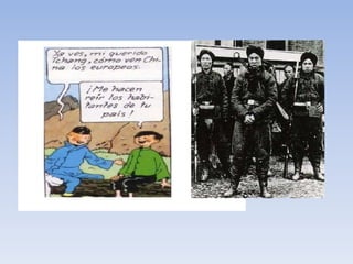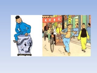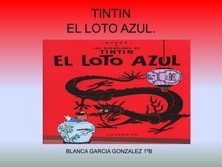 Este documento resume El Loto Azul de Tintín. Narra que Tintín viajará a la antigua China, donde en Shangai descubrirá el origen de un poderoso veneno y se enfrentará a una banda de traficantes de opio y agentes japoneses. Explora la amistad entre Hergé y un estudiante chino que le ayudó a documentarse sobre la cultura china.