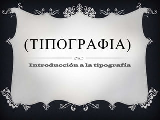 La tipografía ha evolucionado a lo largo de los siglos desde los primeros sistemas de escritura en Mesopotamia hasta la invención de la imprenta de tipos móviles por Gutenberg. Los primeros alfabetos incluían jeroglíficos egipcios y escritura cuneiforme, mientras que los chinos inventaron la caligrafía y la imprenta. Gutenberg revolucionó la impresión al crear letras individuales de metal que podían combinarse para formar páginas.