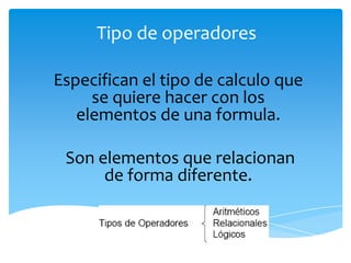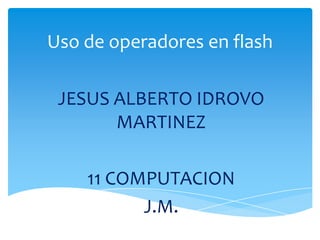 Este documento describe diferentes tipos de operadores que se pueden usar en Flash, incluyendo operadores aritméticos, relacionales y lógicos. Explica que los operadores especifican el tipo de cálculo a realizar y relacionan elementos de una fórmula. También define conceptos como operando, expresión y prioridad de operadores.