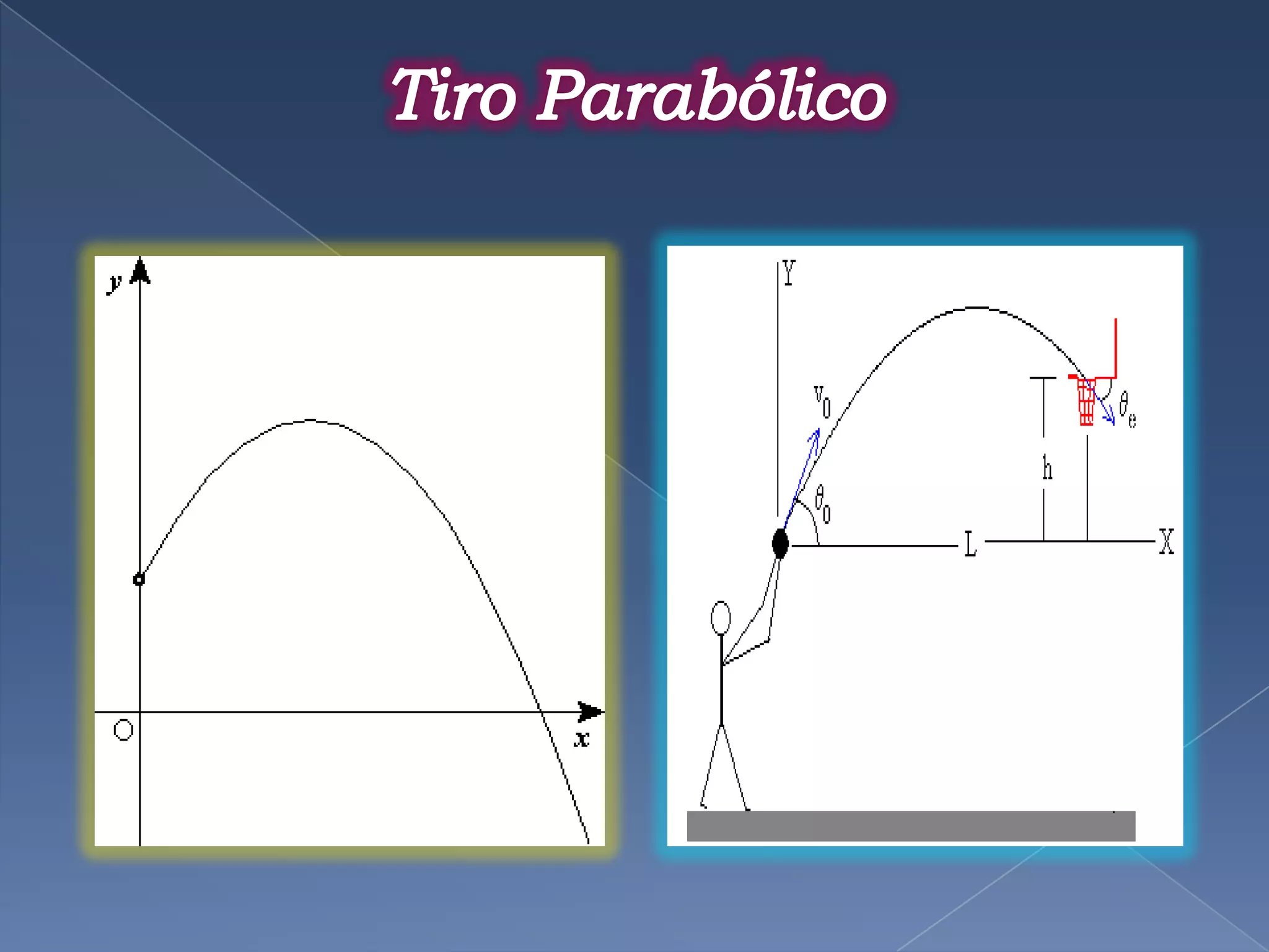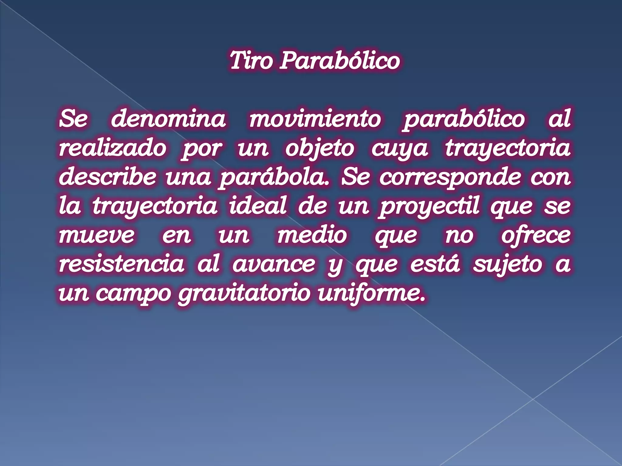 El documento describe la trayectoria parabólica de un proyectil lanzado con velocidad inicial V0 en un ángulo θ, donde la componente horizontal de la velocidad inicial es Vox y la componente vertical es Voy, y la posición del proyectil en función del tiempo se puede calcular usando la ecuación del movimiento uniformemente retardado MRU.