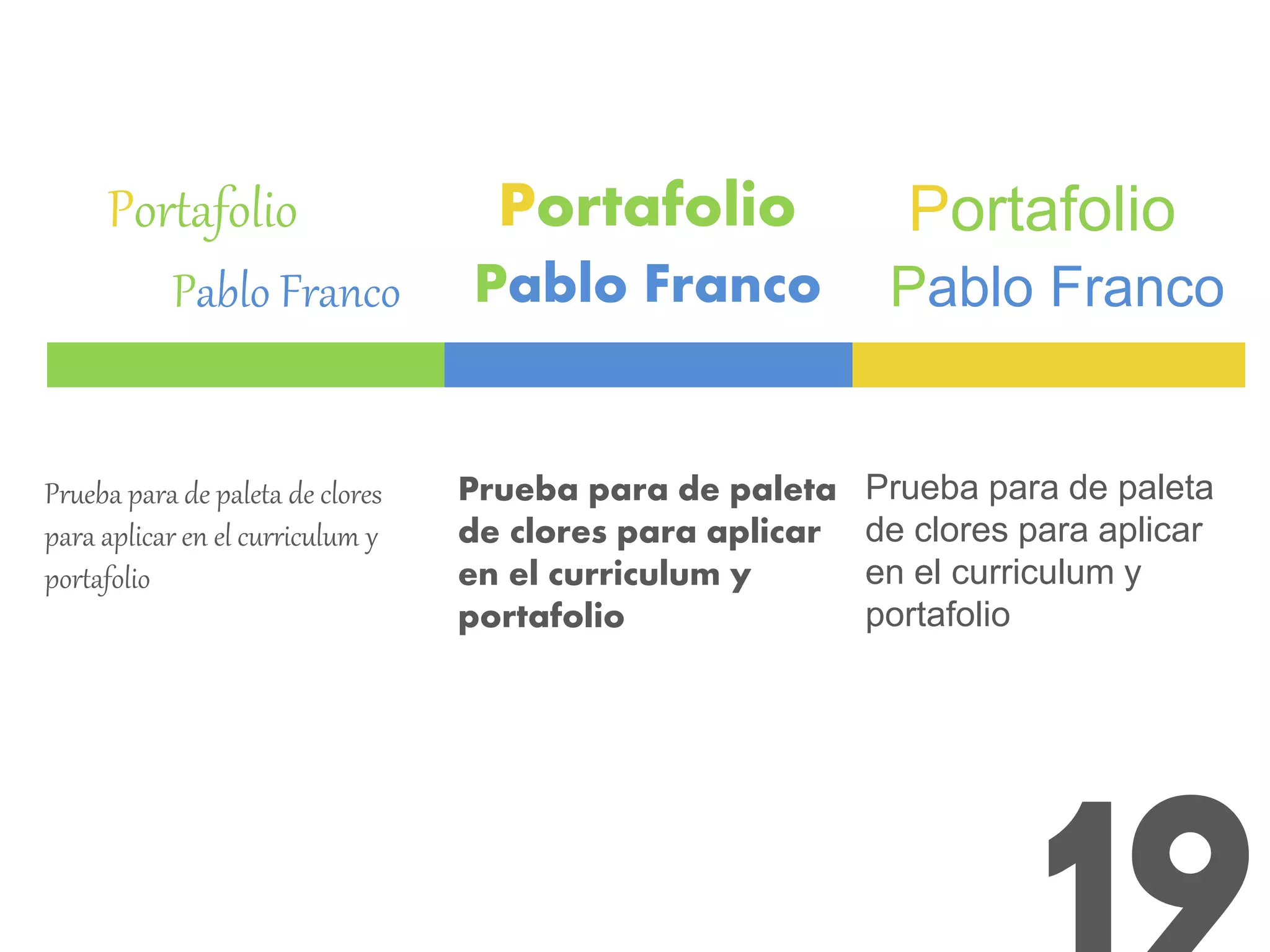 Este documento presenta un portafolio de Pablo Franco que incluye una prueba de paleta de colores para aplicar en su currículum y portafolio. Repite la información sobre Pablo Franco y la prueba de colores varias veces.