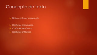 Este documento describe la tipología textual y las diferentes clasificaciones de textos. Explica que un texto debe contener características pragmáticas, semánticas y sintácticas. Luego detalla dos tipos de clasificación de textos: por temática e intención comunicativa. La clasificación temática incluye textos técnico-científicos, humanísticos, jurídico-administrativos, periodísticos, publicitarios y literarios. La clasificación por intención comunicativa comprende textos narrativos, descriptivos, exposit